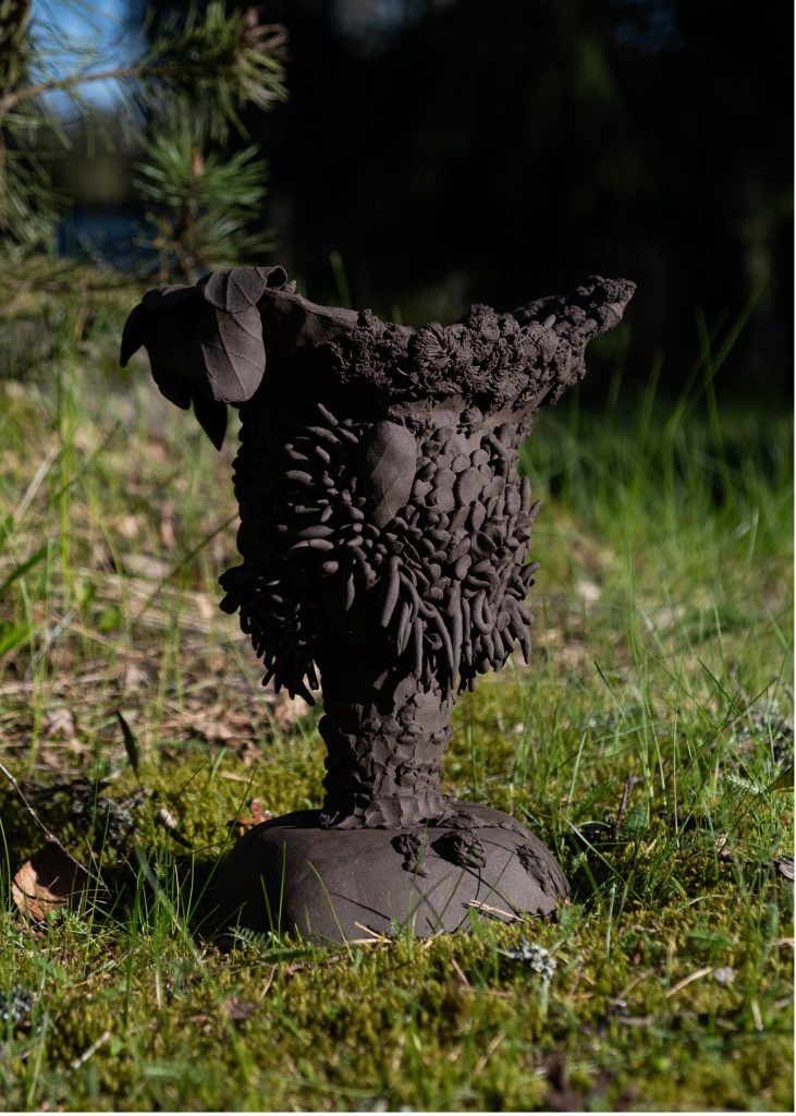 Jutta Himonas (s.1968) on siuntiolainen savenvalaja. Himonasin orgaanisissa teoksissa plastinen materiaali ja tekijä käyvät vuoropuhelua intuitiivisen työskentelyprosessin aikana. Himonasia kiinnostaa kaikki elollinen ja niiden suhde toisiinsa. Musiikki toimii työkaluna nykyhetken ja historian havainnoista nousseiden tunteiden ja ajatusten rakentuessa keraamisiksi esineiksi. Himonasin pääasiallinen materiaali on kivitavarasavi, kausittain myös posliini. Työt syntyvät dreijaamalla ja käsin rakentamalla.